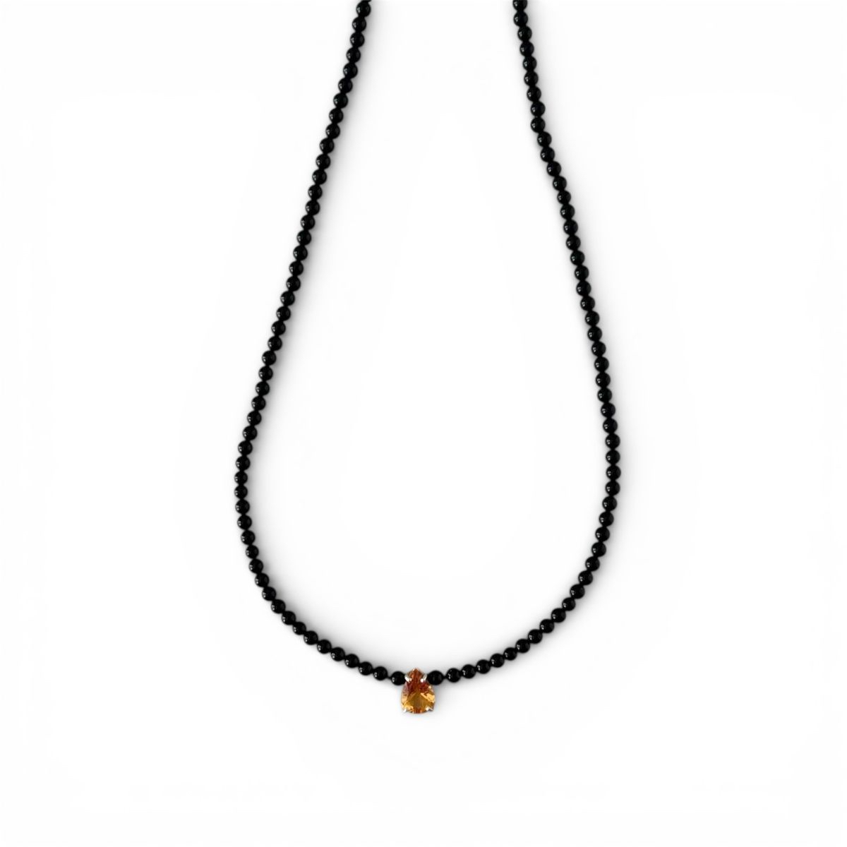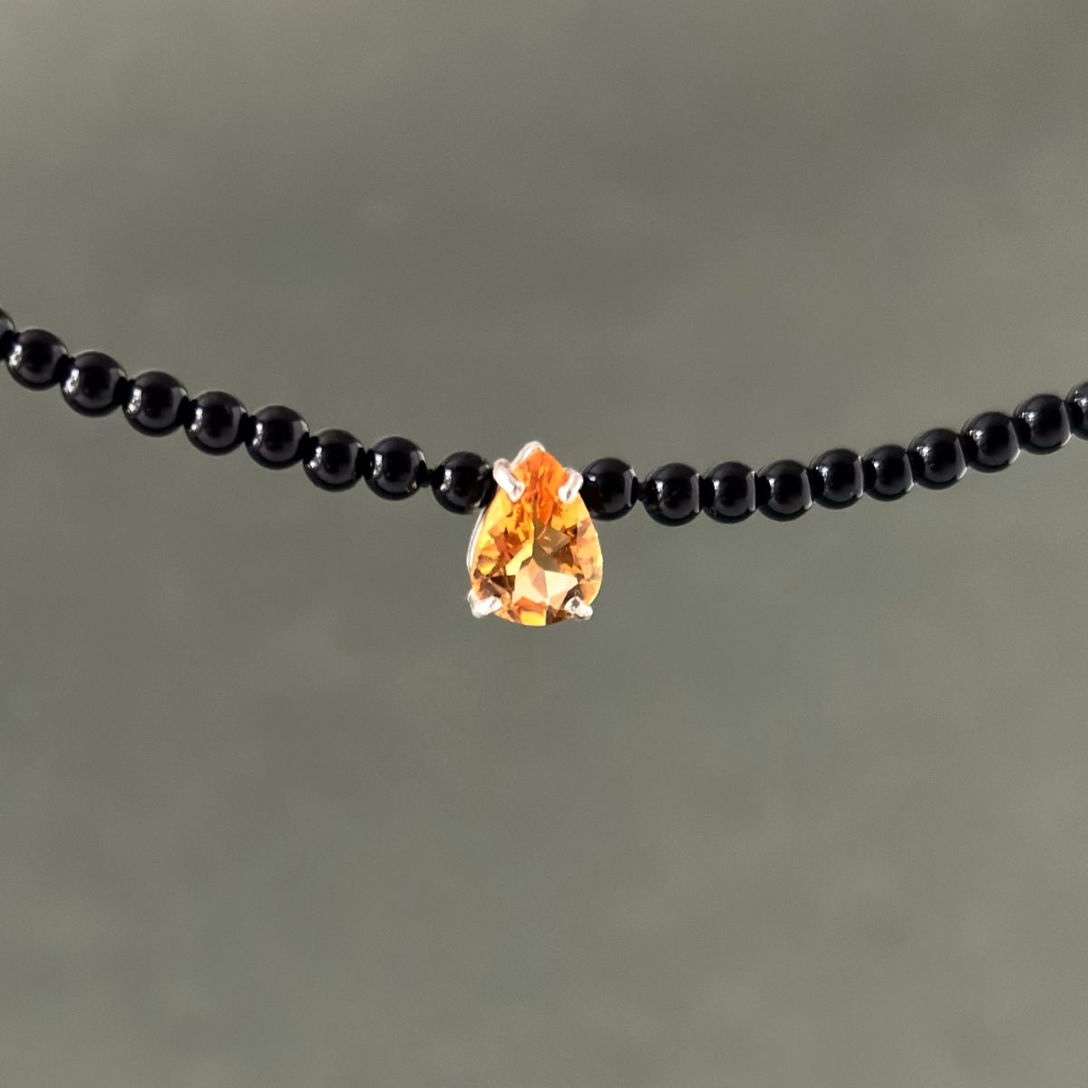Choker de ônix e pingente de citrino amarelo alaranjado com acabamento e fecho em prata 925. Sob encomenda.