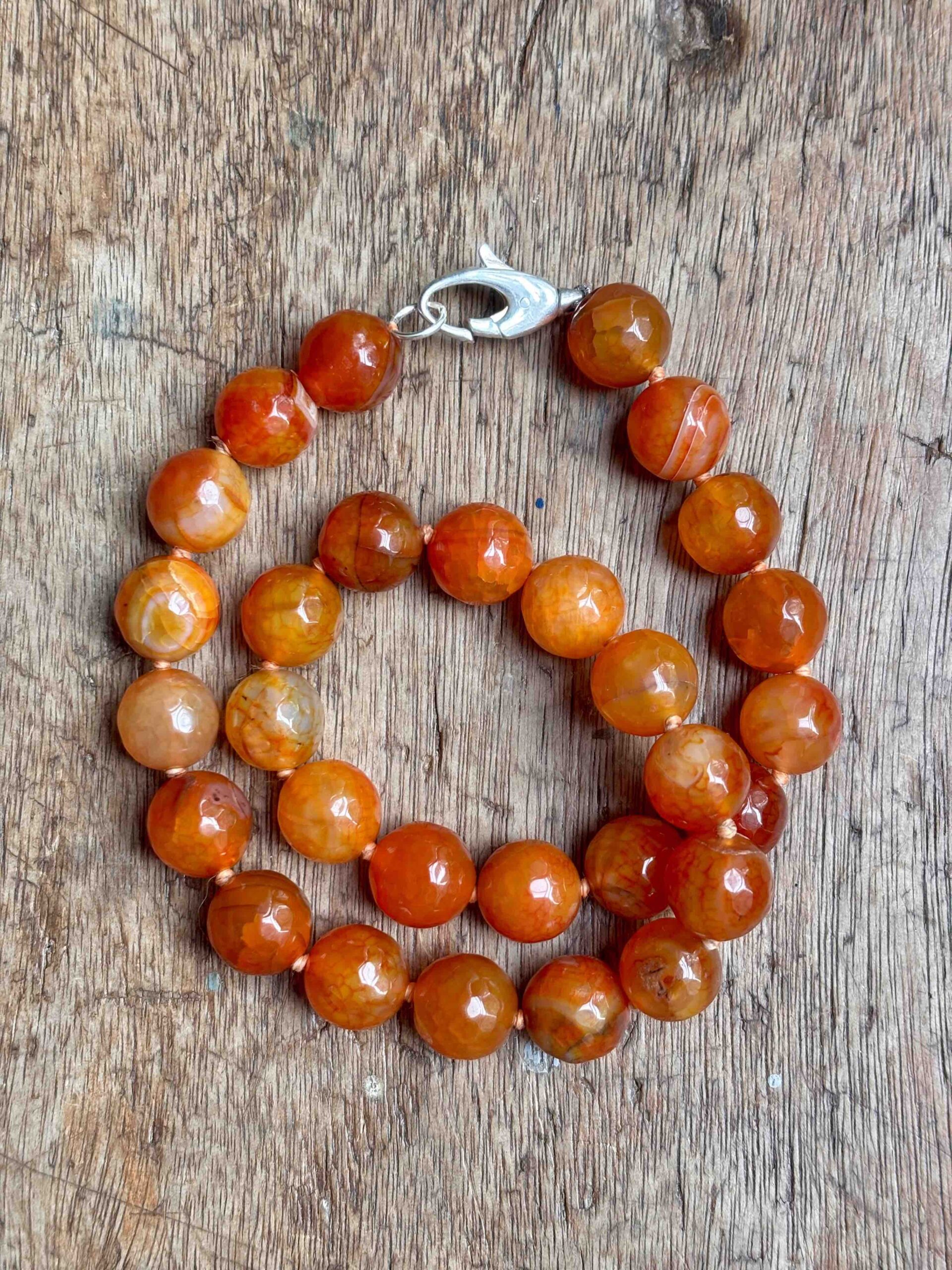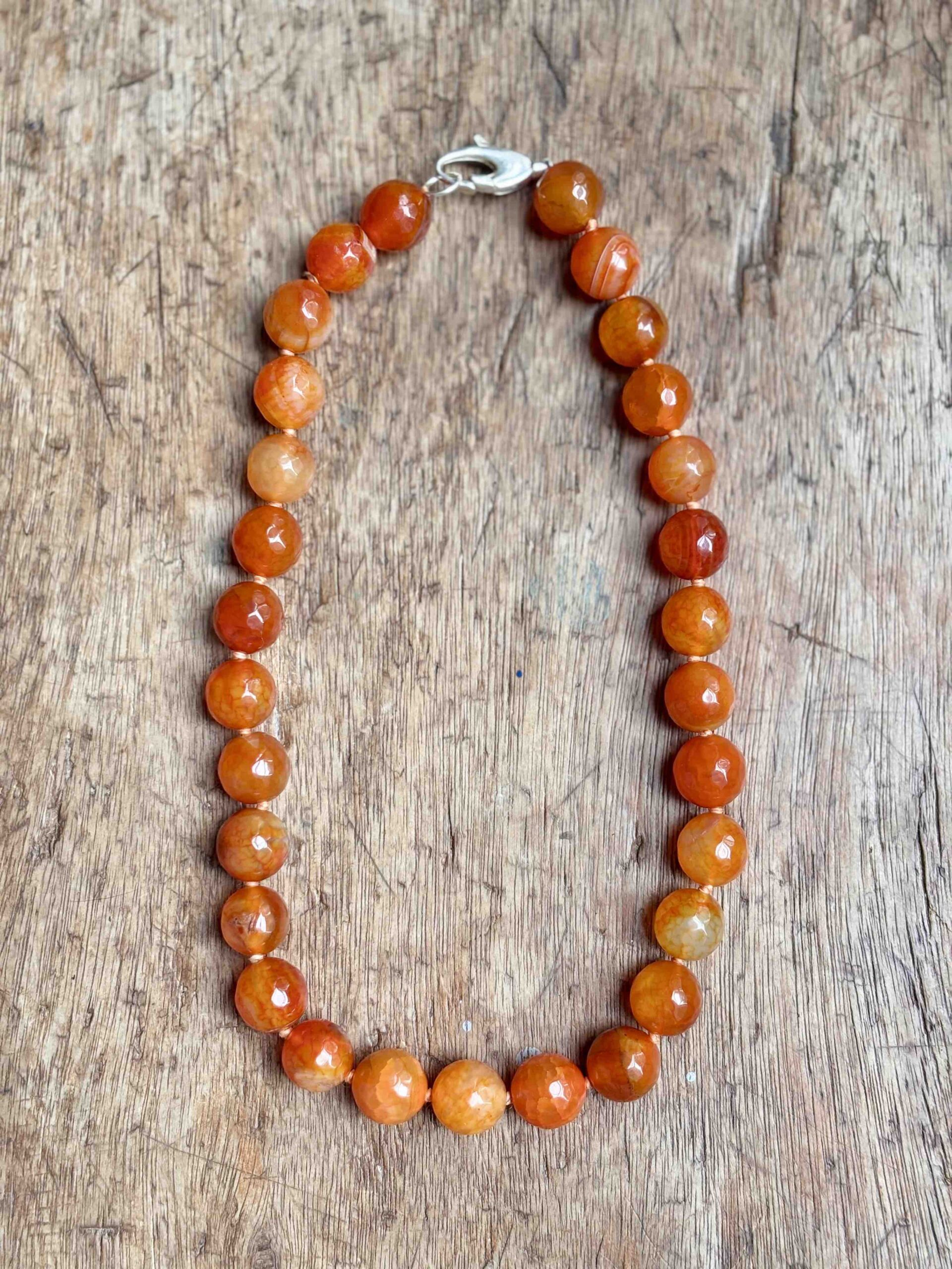 Colar De Ágata de Fogo e Fecho em Prata 925