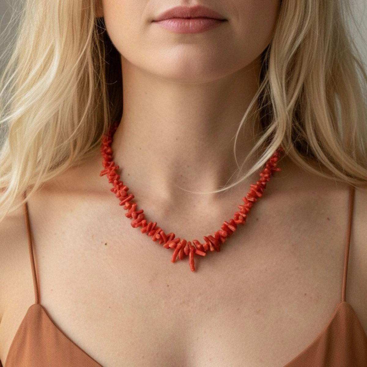 Colar com espículas de coral da Sardenha vintage e fecho tipo boia em prata 925 (1 cm).