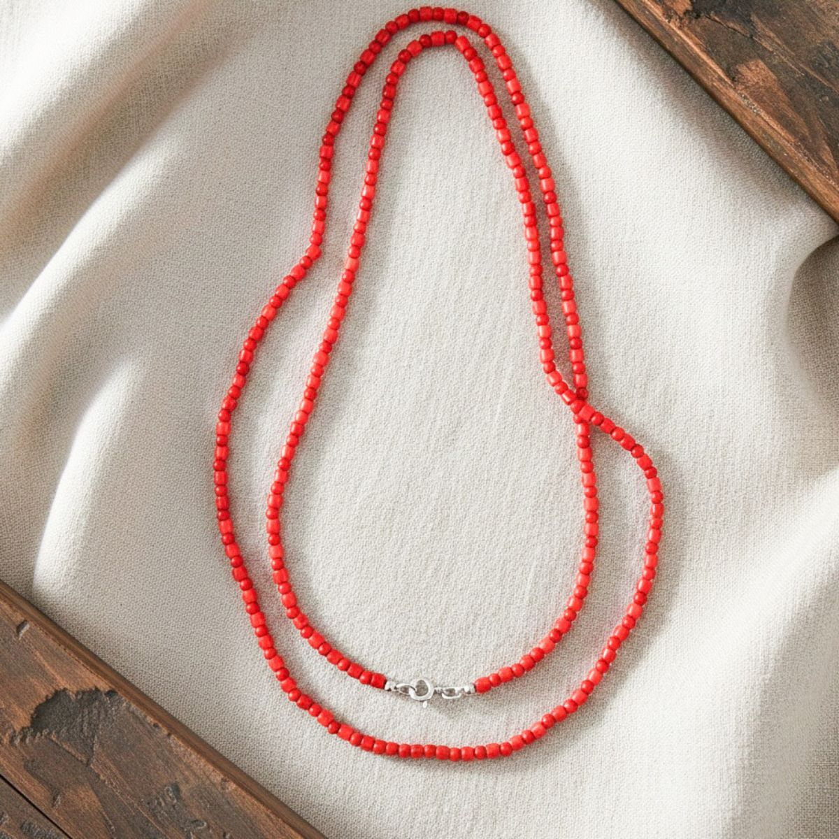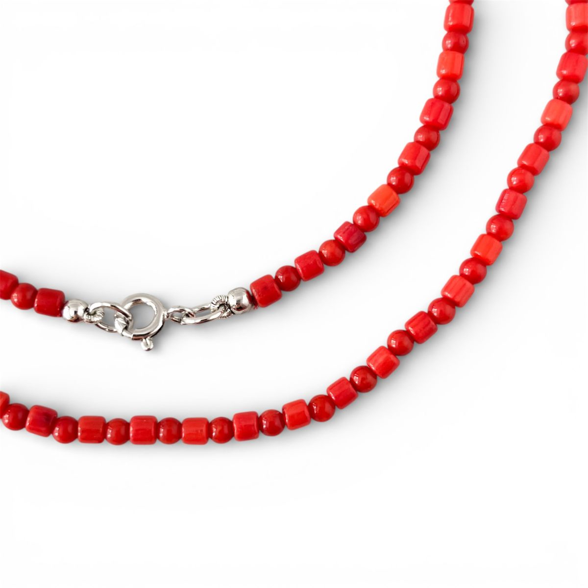 Colar de coral vermelho com fecho em prata 925.