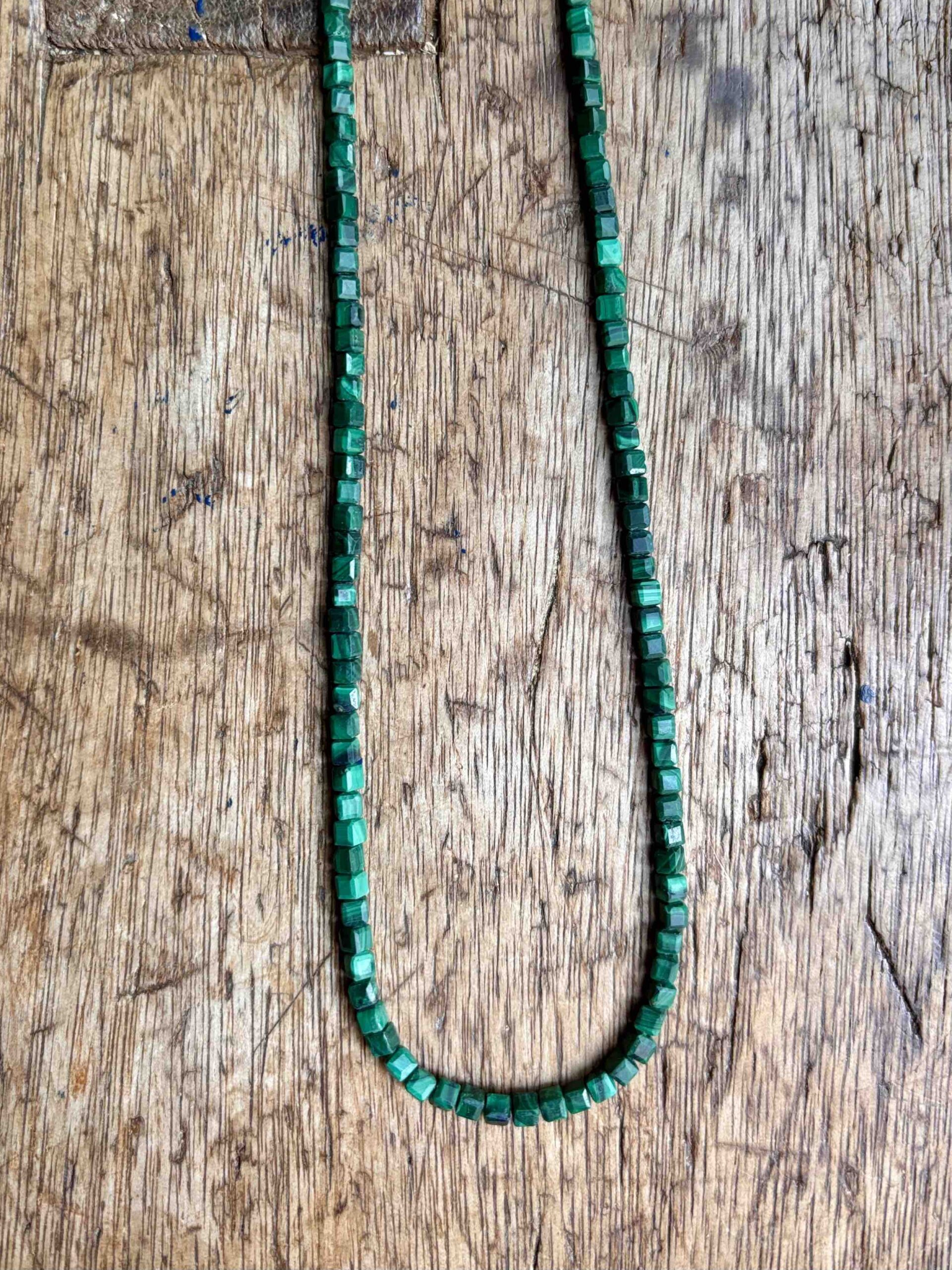 Colar de malaquita. Acompanha fecho e acabamentos em ouro 18k.