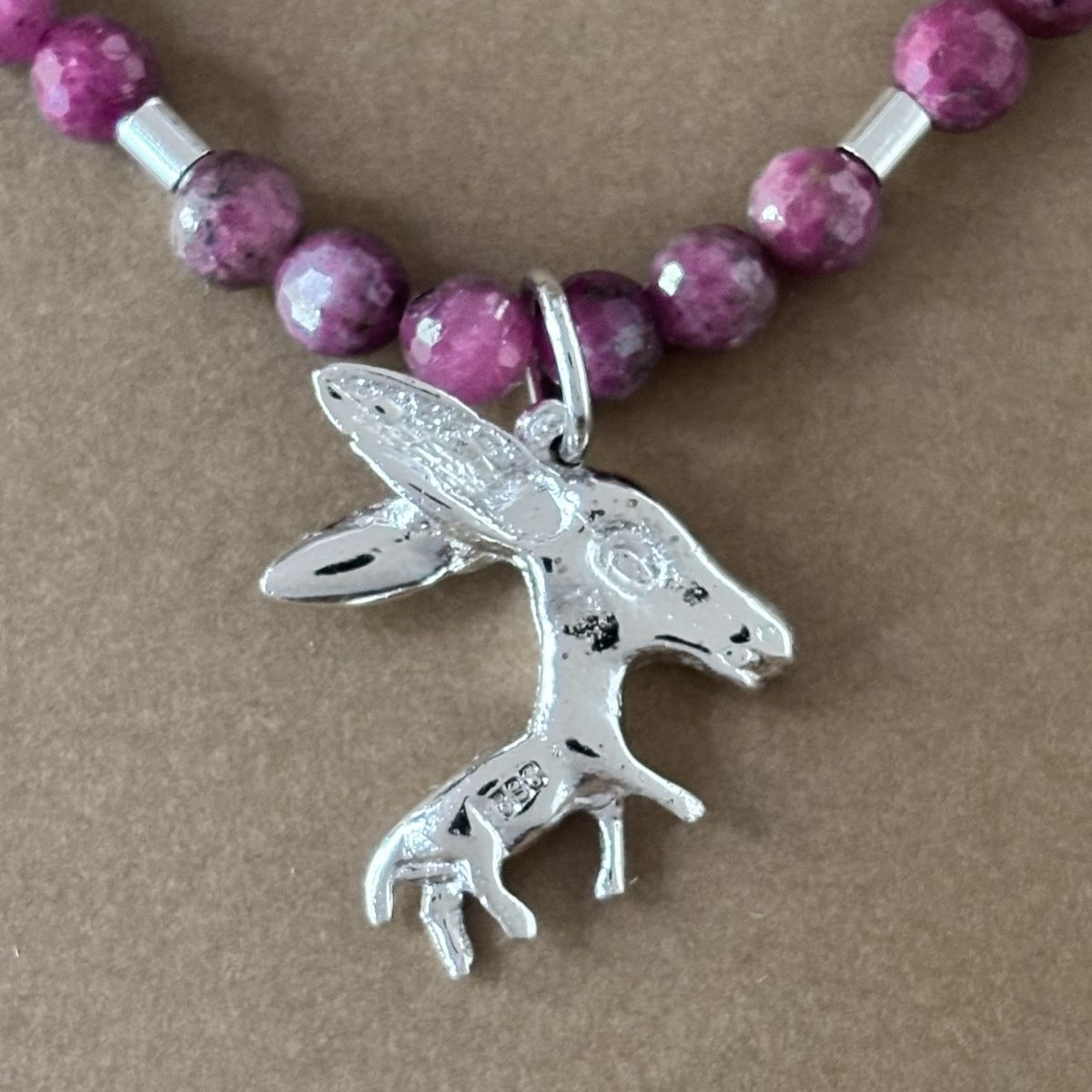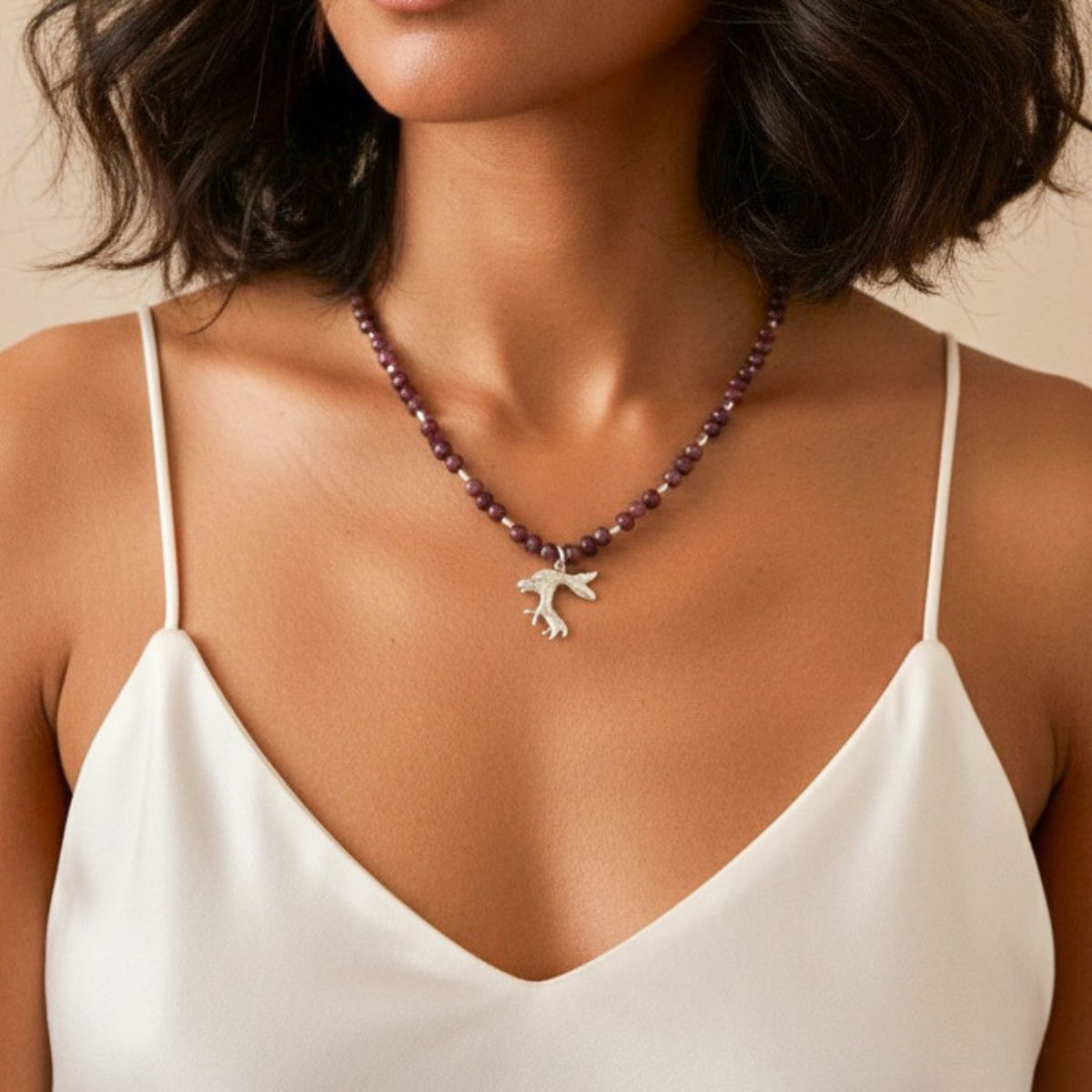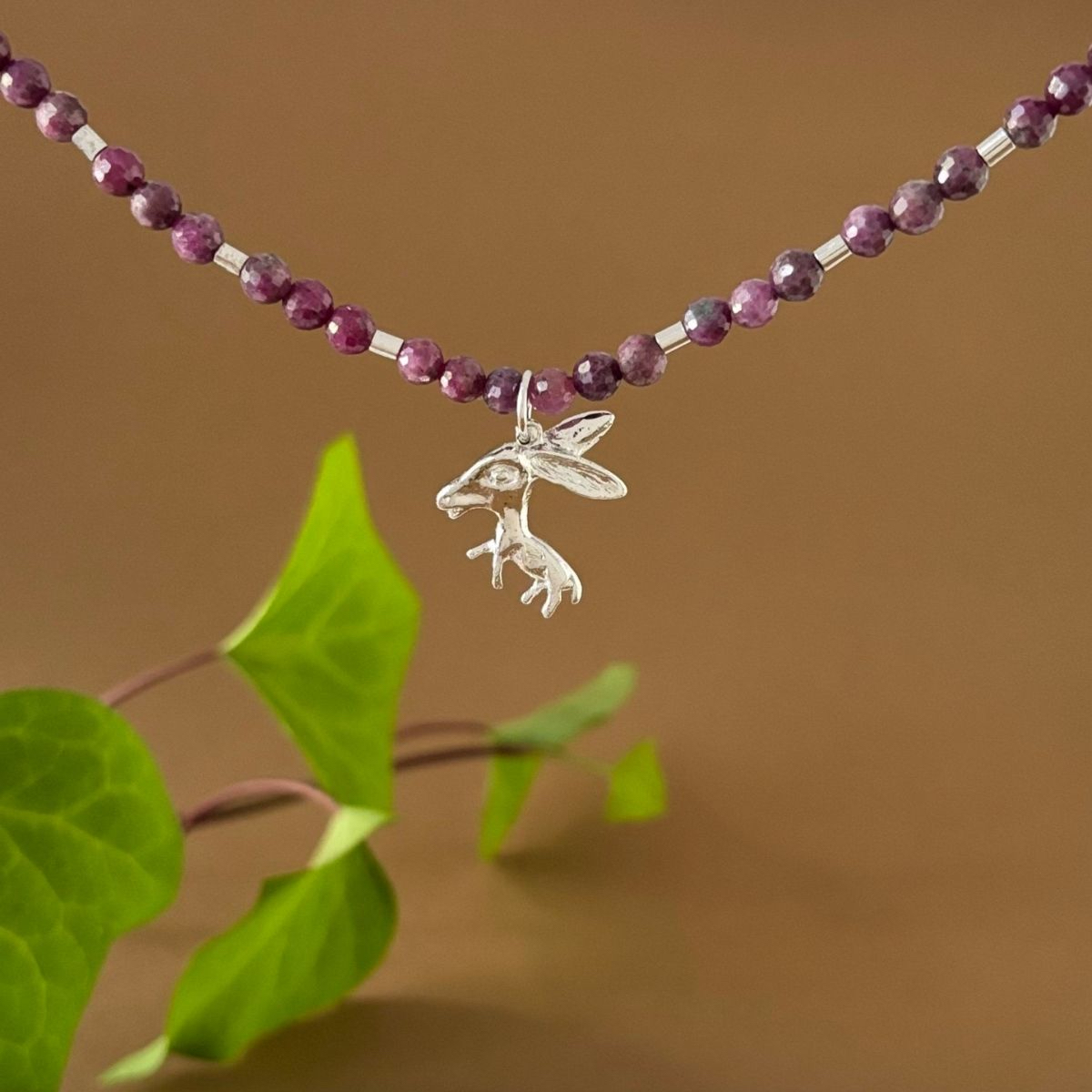 Colar de Rubi com Pingente Vintage em Prata 925 Rodinada