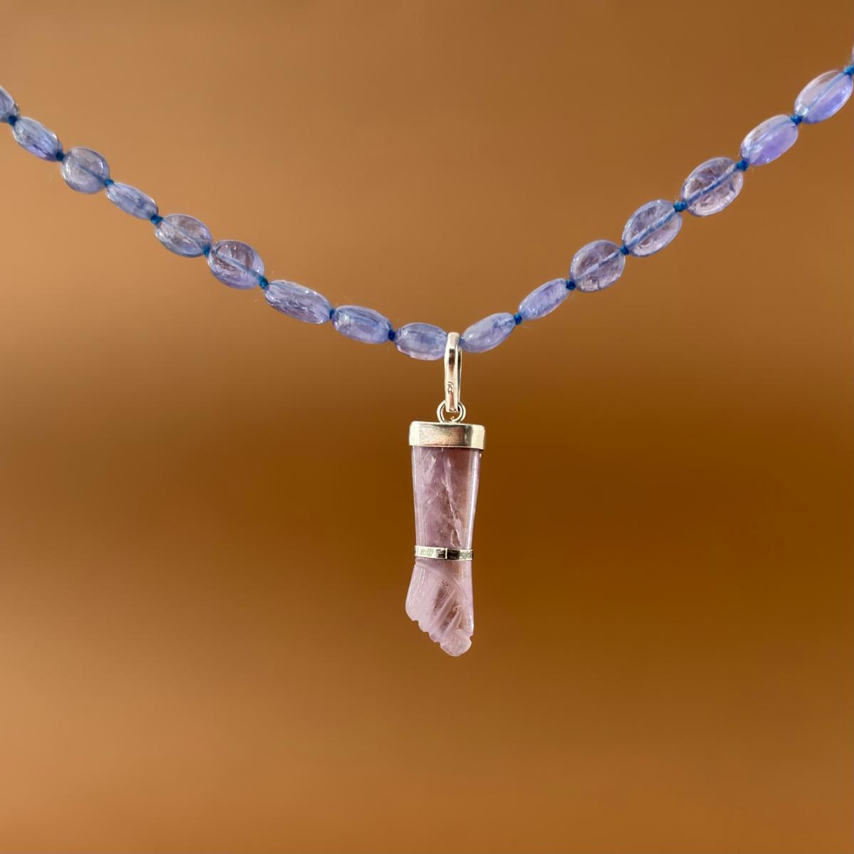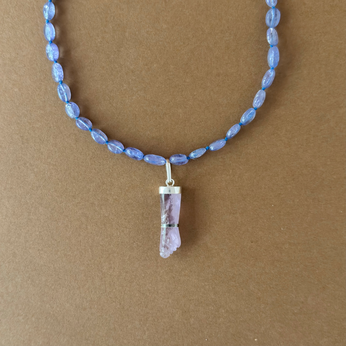 Colar de tanzanita, prata 925 e pingente de figa de ametista e prata.